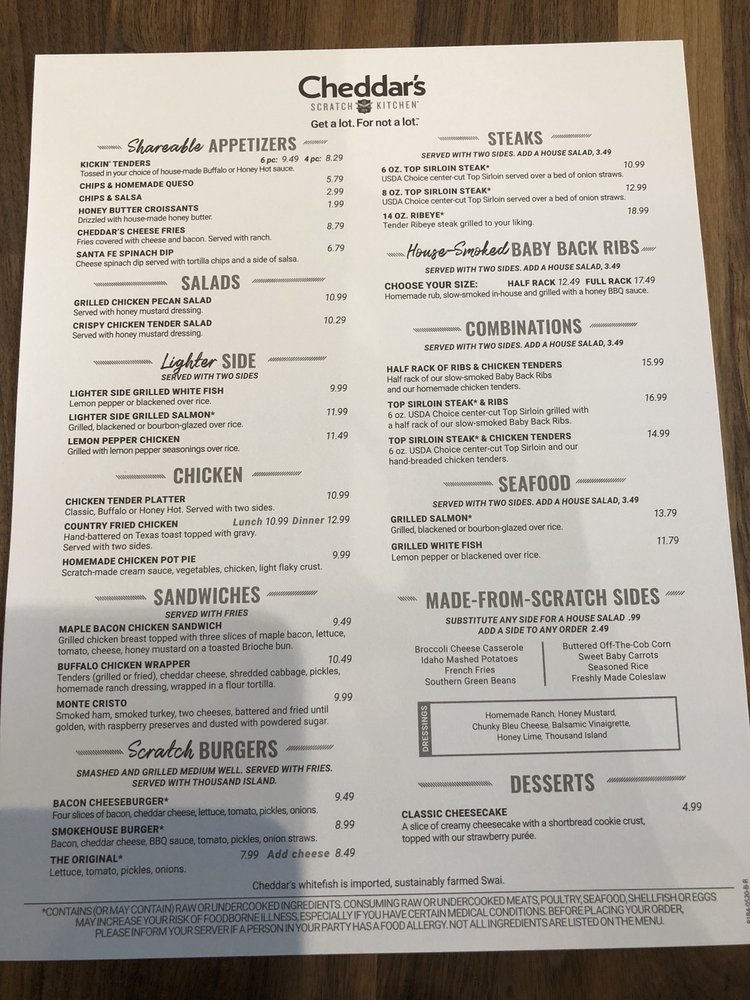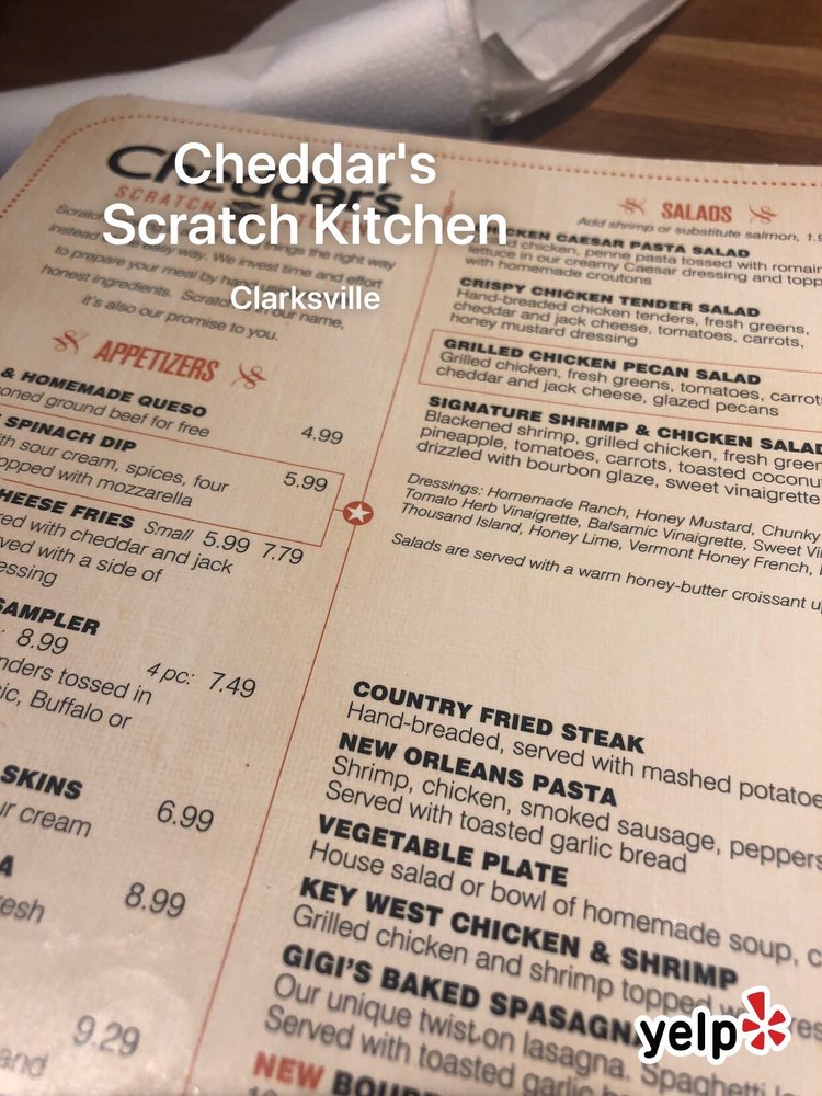 Cheddar's Scratch Kitchen Clarksville Menu (Update 2025)